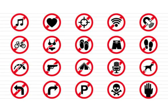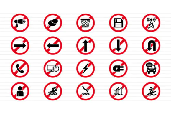 These forbidden signs icons are a practical and versatile design resource for anyone who needs scalable, editable, and ready-to-use prohibition symbols for professional visual communication.