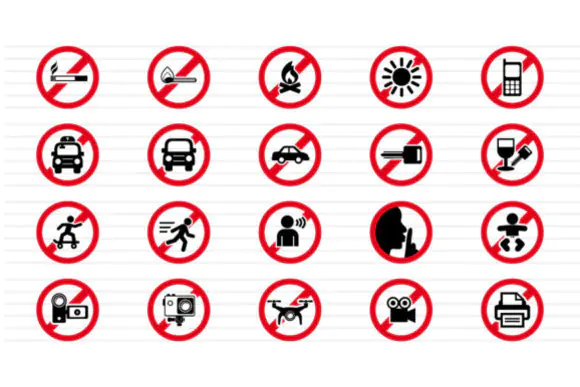 This pack is especially useful for projects involving safety signage, industrial graphics, workplace communication, instruction manuals, websites, mobile apps, dashboards, presentations, posters, labels, and training materials. The included forbidden sign icons help communicate restrictions and warnings in a simple, recognizable, and universally useful visual format.