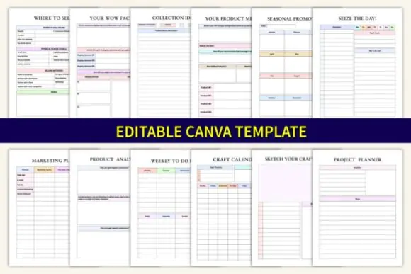 This planner is ideal for sellers on Etsy, Shopify, craft fairs, handmade product stores, and other creative businesses that want a professional yet flexible planning system. Because it is editable in Canva, you can customize colors, fonts, branding, and layouts to match your own style or business identity. It works well for both personal business use and customized digital product workflows.