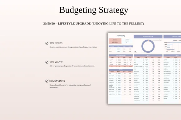 The 30/50/20 Lifestyle Upgrade Budget Template is perfect for anyone who wants a practical and easy-to-follow financial system. Whether you are planning your monthly budget, tracking expenses, organizing savings goals, or trying to spend more intentionally, this spreadsheet gives you a clear structure to manage your money with confidence.