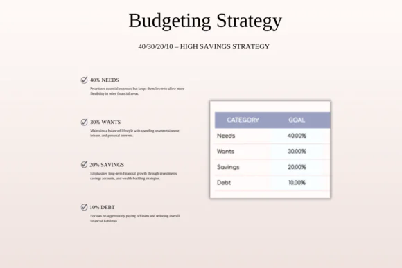 The 40/30/20/10 budgeting method divides your income into four clear categories: 40% for needs, 30% for wants, 20% for savings, and 10% for debt repayment. This structure is ideal for anyone who wants to prioritize savings, reduce debt faster, and build a stronger path toward financial freedom while still enjoying everyday life.