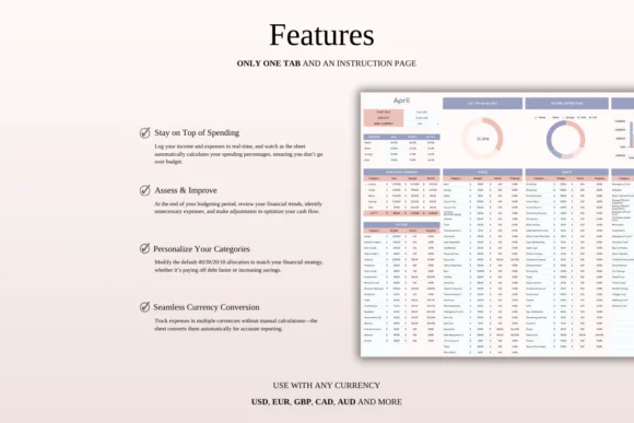 This digital budget spreadsheet includes: