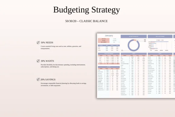 Manage your money with clarity and confidence using this 50/30/20 Monthly Budget Spreadsheet for Excel and Google Sheets. This easy-to-use budgeting template is designed around the popular 50/30/20 rule, helping you divide your income into three simple categories: needs, wants, and savings or debt repayment.