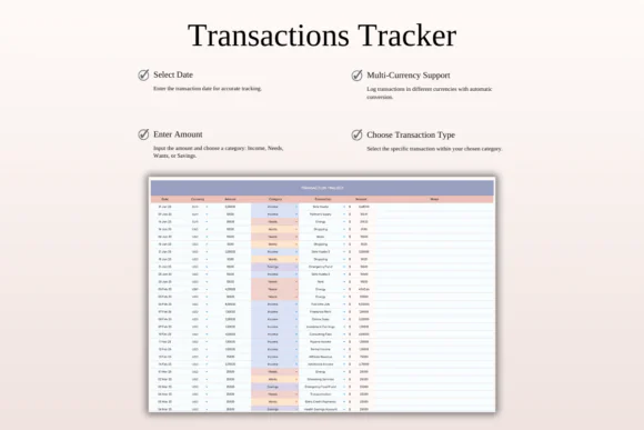 Simply enter your income, and the spreadsheet helps divide your budget into needs, wants, and savings or debt repayment categories.