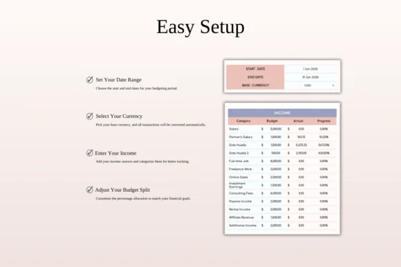 The spreadsheet is designed to be simple, visual, and easy to understand, even if you are new to budgeting.