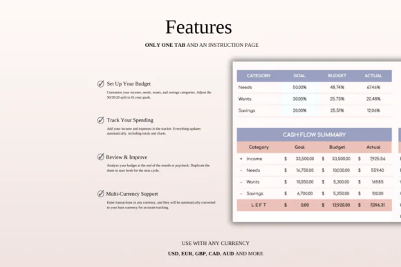 Compatible with both Microsoft Excel and Google Sheets, this template can be used online or offline and customized to fit your personal financial goals.