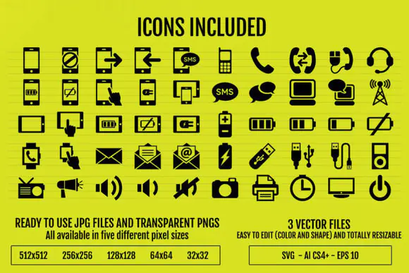 This package includes ready-to-use files in multiple formats, making it easy to work with whether you are designing for websites, mobile apps, dashboards, social media, presentations, infographics, or print materials. The set comes with JPG files ready to use in 5 different background colors and 5 different file sizes, along with transparent PNG files featuring black and white icons in the same size range. For creators who want full editing flexibility, the bundle also includes editable vector files in SVG, Illustrator, and EPS formats.
