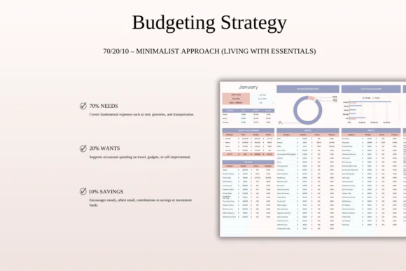 Manage your money with simplicity and confidence using this 70/20/10 Monthly Budget Spreadsheet for Excel and Google Sheets. This minimalist budgeting template is designed for anyone who wants a clear, stress-free way to organize income, essential expenses, lifestyle spending, and savings without complicated financial systems.