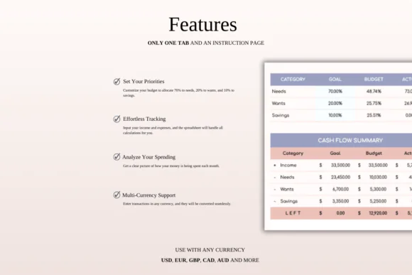 This spreadsheet keeps budgeting simple, practical, and realistic. It helps you focus on the essentials, enjoy lifestyle spending responsibly, and save consistently for the future.