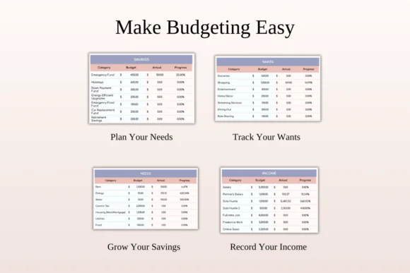 This template helps you cover your basic living costs, limit unnecessary spending, and slowly build savings over time. Whether you are managing rent, utilities, groceries, transportation, insurance, small personal expenses, or emergency savings, this budget planner gives you a clean structure to stay organized and avoid overspending.