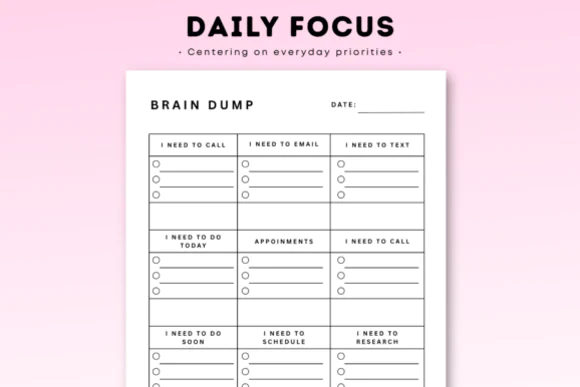 This brain dump planner features an undated format, which means you can start using it anytime and print as many copies as you need. Its portrait layout makes it suitable for planner binders, notebooks, desk planning, and digital annotation. The clean design is especially useful for people who prefer a distraction-free format that supports focus and organization without unnecessary clutter.