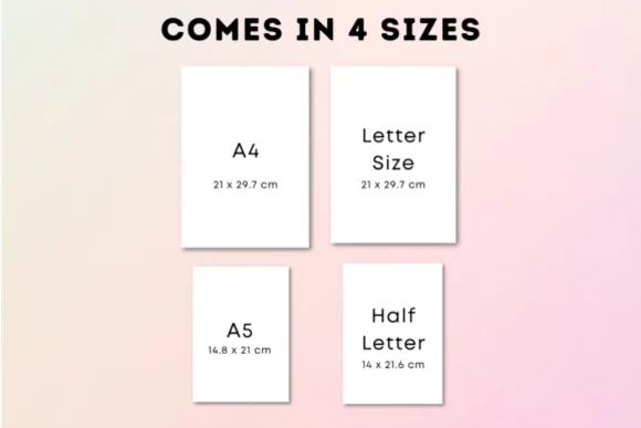 The product comes in A4, A5, Letter, and Half Letter sizes, giving you the flexibility to choose the format that best fits your planning system or device. After purchase, you will receive 4 PDF files, one for each size, making it easy to print at home or through a local print shop. It also includes both a printable PDF version and a digital PDF version, so it works well for both paper planners and digital planning apps.