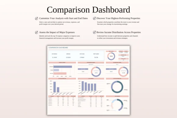 Instead of manually calculating every booking, expense, and profit figure, you can enter or paste your transaction data into the spreadsheet and allow the built-in dashboards to organize the details for you. The template helps you track rental revenue, platform income, maintenance costs, cleaning expenses, utilities, management fees, taxes, supplies, repairs, and other property-related expenses.