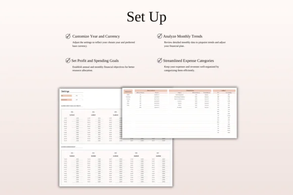 With customizable categories, automated calculations, currency conversion support, budget planning, and profit goal tracking, this template gives Airbnb hosts a practical way to manage their finances without complicated software. The elegant theme keeps the spreadsheet clean, professional, and easy to use.