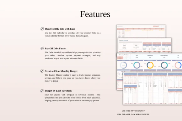 This bundle gives you the essential tools needed to manage personal finances in a simple and practical way. Instead of using separate notebooks, reminders, and disconnected spreadsheets, you can organize your bills, budget, debt payments, and paycheck planning with one complete template collection.