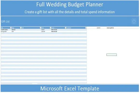 The Guest List Tracker helps you manage invitation status, RSVP responses, contact details, dietary requirements, and automated guest totals. The Seating Plan tab helps you organize your seating arrangement while comparing totals against your guest list so no one gets missed. The Wedding Gift List includes a running cost total, making it easier to track gifts and related spending.