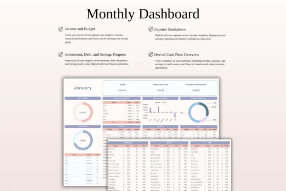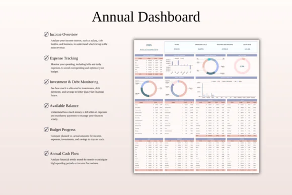 This spreadsheet helps you understand your finances beyond a single month. You can see your income, expenses, savings, and financial progress across the full year, making it easier to plan ahead and stay consistent.