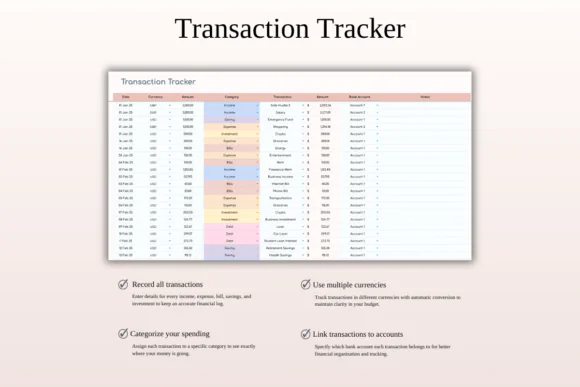 Categorize and track income sources, bills, spending, savings, and other financial activity so you can see where your money goes each month.