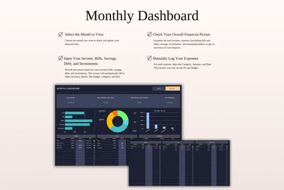 The dark theme gives the spreadsheet a polished, modern look while making it comfortable to use in low-light environments. With a simple and organized layout, you can quickly record bills, select the month and year, track payment status, and see which bills are paid, pending, or due. It also supports multi-currency use, making it flexible for different users and financial needs.