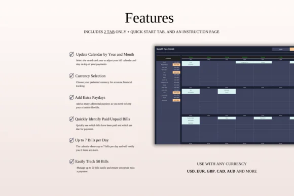 This template includes automatic calculations, a 10-year compact planner, color customization options, and support for up to 50 bills per day on the calendar. Whether you are managing a personal budget, tracking business payments, organizing family expenses, or planning recurring bills, this spreadsheet gives you a practical and reusable system to avoid missed payments and stay financially organized.