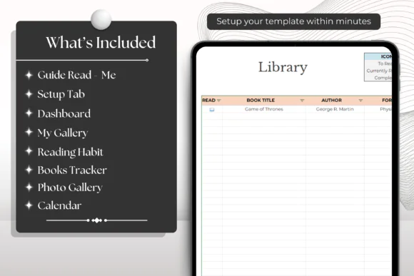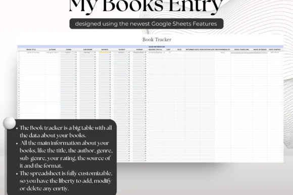 This spreadsheet helps you track owned books, borrowed books, upcoming releases, current reads, completed books, book costs, ratings, authors, genres, formats, recommendations, reading dates, return dates, publication dates, book covers, tags, and personal notes. Whether you read physical books, ebooks, audiobooks, library books, or books from your personal collection, this tracker gives you a complete place to organize everything.