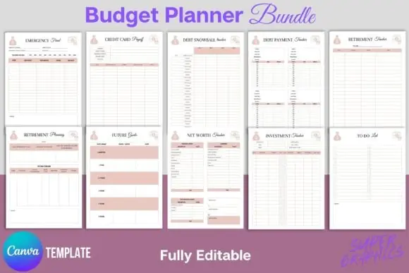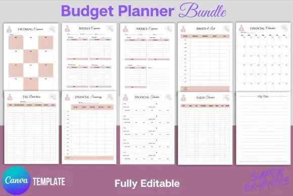 Take control of your money with this comprehensive Budget Planner Bundle Canva Template, designed to help you manage income, expenses, savings, bills, debt, and financial goals in one organized system. This editable finance planner is perfect for individuals, families, small business owners, and digital product sellers who want a clean and professional budgeting tool that can be customized in Canva.