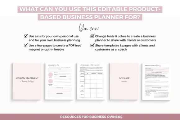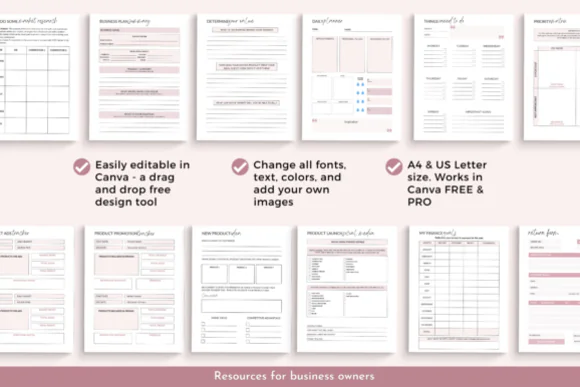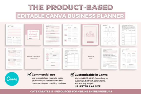Build a more organized, strategic, and productive business with this comprehensive Business Planner Templates Canva bundle. Designed especially for product-based business owners, this editable planner is ideal for Etsy sellers, Shopify sellers, coaches, and online shop owners who want a practical system for planning goals, managing products, tracking finances, organizing launches, and improving brand direction. It gives you the flexibility to customize the planner in Canva so it fits your own workflow, brand style, or client needs without starting from scratch.
