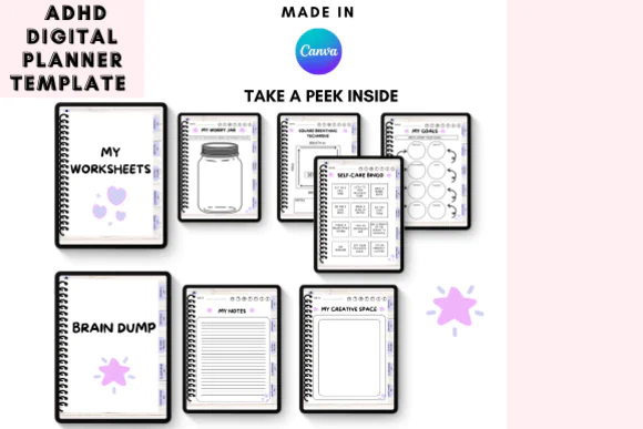 Stay organized in a fun, supportive, and stress-free way with this Canva ADHD Digital Planner Template, thoughtfully designed for individuals who want a more flexible and ADHD-friendly planning system. This all-in-one planner helps bring structure to daily life, routines, wellness tracking, and personal organization while keeping the experience simple, engaging, and visually easy to use. It is ideal for personal use, digital product shops, and online business owners looking for an editable planner that can also be customized for resale.