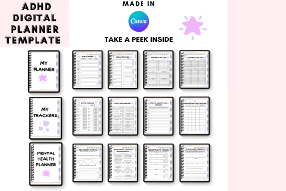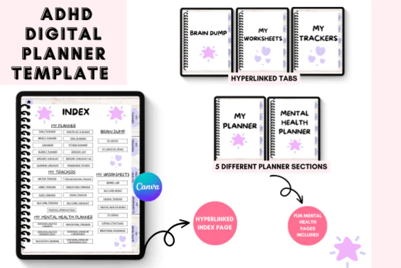 Because this is a digital product, no physical item will be shipped. After purchase, simply access the Canva template link from the included PDF, customize the design, and use it digitally. This ADHD digital planner is a practical and attractive choice for improving focus, building routines, tracking wellness, and managing everyday life with greater clarity.