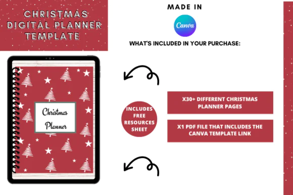 This planner includes 30+ digital planner pages created to reduce seasonal stress and make festive planning more enjoyable. It brings together planning, organization, and tracking tools so users can stay on top of everything needed for the holiday season in one convenient place.