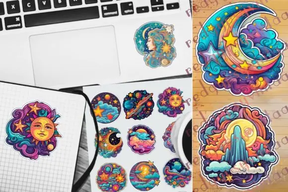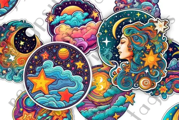 These celestial stickers are ideal for junk journals, scrapbooking, printables, Cricut projects, magnets, wall art, planner pages, sticker sheets, print-on-demand products, stationery, and other boho-inspired DIY crafts. Their colorful and intricate celestial artwork makes them especially suitable for spiritual, mystical, astrology-inspired, and decorative design themes.