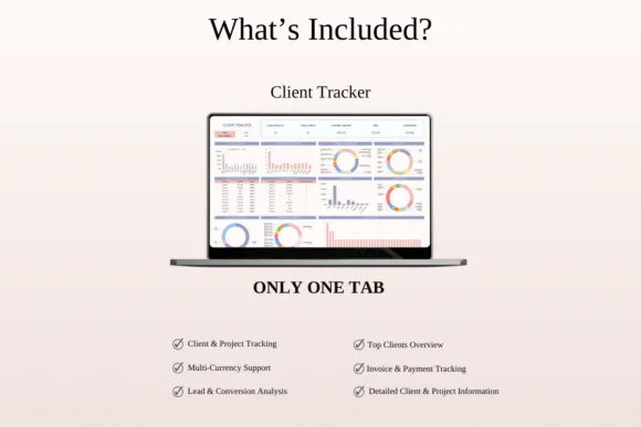 Inside the bundle, you get two essential client management tools: a CRM Spreadsheet Template and a Client Tracker Spreadsheet. The CRM template helps you manage client contacts, track communication, monitor leads, and organize your sales or service pipeline from first contact to final delivery. The Client Tracker helps you manage active projects, timelines, service progress, payment status, and important client details in one easy-to-access place.