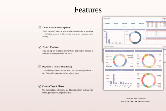 Manage client relationships, projects, communication, and payments with ease using this Client Tracker + CRM Templates Toolkit for Excel and Google Sheets. Designed for freelancers, coaches, consultants, service providers, agencies, solopreneurs, and small business owners, this bundle gives you a simple and organized way to manage clients without complicated CRM software.