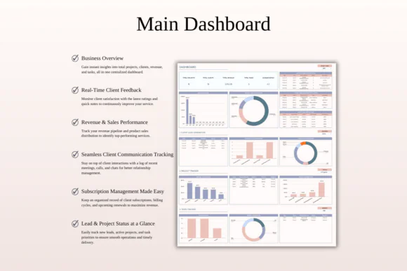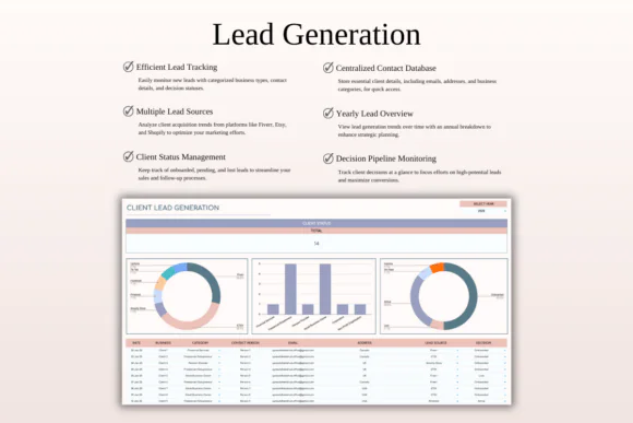 Instead of losing client details across emails, notebooks, messages, and separate files, you can use this all-in-one CRM system to store information, track interactions, segment customers, manage follow-ups, and review sales activity from one organized spreadsheet.