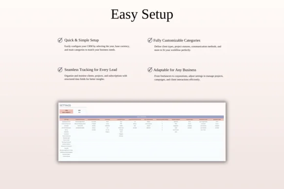 Organize customer relationships, manage client details, track communications, and improve follow-ups with this CRM Spreadsheet Template for Google Sheets and Microsoft Excel. Designed for small businesses, freelancers, startups, sales teams, marketers, consultants, agencies, and service providers, this spreadsheet gives you a simple and effective way to manage customer data without expensive CRM software.