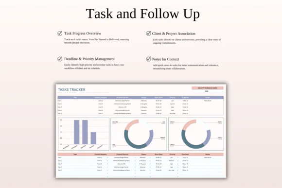 Set follow-up tasks, reminders, deadlines, and client action points so you never miss an important meeting, message, or sales opportunity.