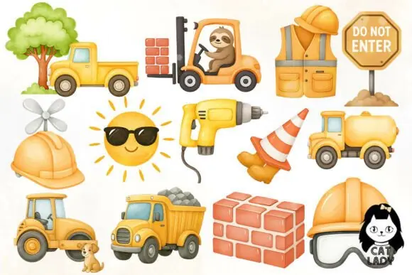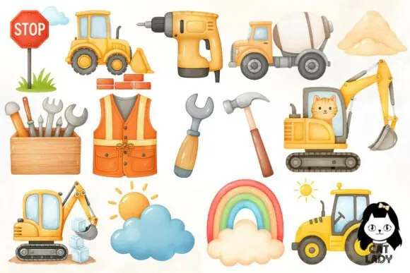This bundle is a great choice for anyone who loves construction-themed designs, kids clipart, watercolor illustration, and versatile printable graphics for fun and creative projects.