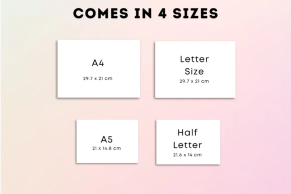 This planner comes in multiple convenient sizes, including A4, A5, Letter, and Half Letter, giving you the freedom to choose the format that best suits your planner binder, notebook, or digital device. After purchase, you will receive 4 PDF files, one for each size, making it easy to print at home or through a local print shop. It also works well as a digital PDF planner for users who prefer paperless planning.