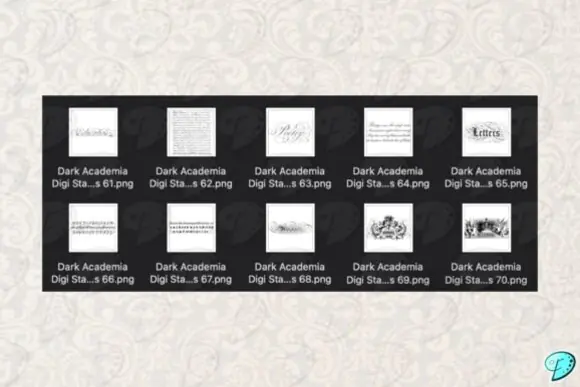 This bundle is perfect for creating printable papers, scrapbook layouts, junk journals, ephemera pieces, envelopes, tags, card making projects, mixed media art, planner decorations, collage work, and themed stationery. Whether you are a crafter, designer, journal artist, or small business owner, these dark academia graphics provide rich visual elements that add depth, mystery, and sophistication to your creations.