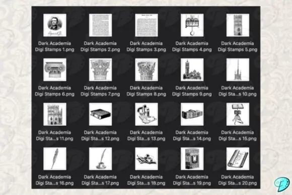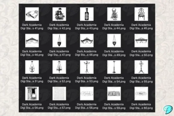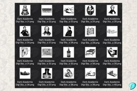 Add moody elegance and vintage scholarly charm to your creative work with this beautiful Dark Academia Digi Stamps PNG Clipart Bundle. Designed for lovers of dark academia aesthetics, mixed media art, and antique-inspired paper crafts, this collection includes 70 transparent PNG files that are perfect for layering, decorating, and enhancing both digital and printable projects.