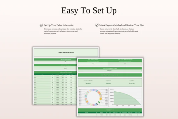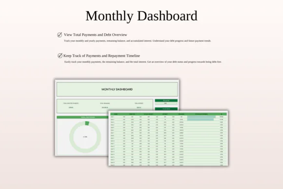 Manage your debt repayment journey with more clarity and focus using this Debt Repayment Tracker Spreadsheet for Excel and Google Sheets. Designed with a clean and calming Green Theme, this template helps you organize debts, choose a payoff strategy, monitor monthly targets, track interest, and stay motivated as you work toward becoming debt-free.