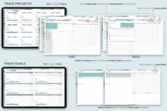 This planner stands out with 6 beautiful color themes, Apple and Google Calendar integration, 4 weekly layouts, 4 daily planning templates, Monday and Sunday start options, and over 40,000 hyperlinks for smooth navigation. It is designed for users who want a highly customizable planning system that works across devices and major note apps.