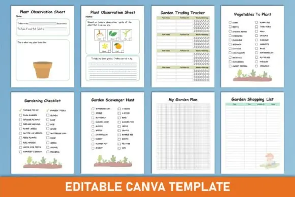 Each template is fully editable in Canva, allowing users to customize text, colors, fonts, and layout style to match their personal needs, classroom theme, homeschool activity, printable shop, or KDP publishing project. The planner also includes high-quality print-ready PDF, JPG, and PNG files, making it suitable for printable worksheets, gardening journals, kids activity books, educational planners, and digital product bundles.