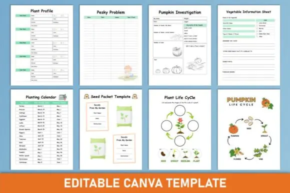 Use it as a kids gardening journal, seed tracker, plant observation worksheet, vegetable garden planner, plant life cycle activity, pumpkin investigation worksheet, harvest log, garden scavenger hunt, homeschool gardening printable, classroom garden workbook, or editable Canva KDP interior.