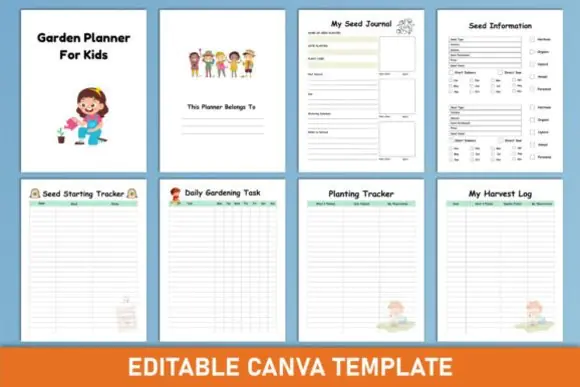 Make gardening fun, educational, and organized with this Editable Garden Planner for Kids Canva Interior. This printable kids gardening planner is designed to help children learn about seeds, plants, vegetables, life cycles, garden tasks, plant observations, harvest tracking, and outdoor exploration in a simple and engaging way.