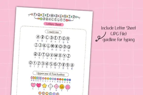 Each letter is styled to resemble cute colorful beads, making your typography feel joyful, friendly, and full of personality. Friendship Bracelet Font is perfect for designers, crafters, scrapbookers, stationery makers, print-on-demand sellers, small business owners, and DIY creators who want a warm and meaningful font for friendship-themed designs.