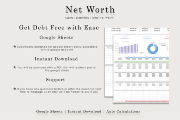 The Google Sheets Net Worth Budget Template is a practical finance spreadsheet for anyone who wants to understand their financial health more clearly. With a net worth dashboard, charts, graphs, and organized sections for assets and liabilities, this template helps you track progress and make more confident money decisions over time.