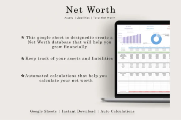 Track your financial progress with this Google Sheets Net Worth Budget Template, a simple and useful spreadsheet designed to help you monitor your assets, liabilities, net worth, and overall financial growth in one organized place.