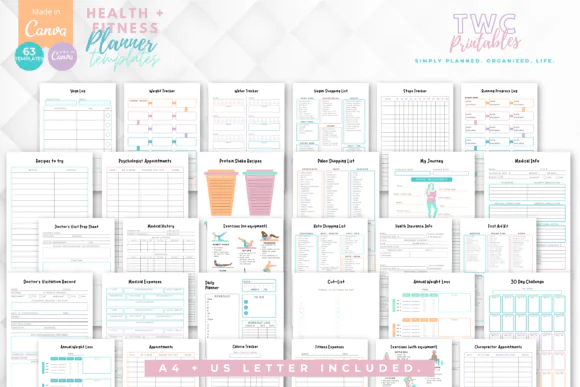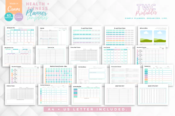 Build a more organized and intentional wellness routine with this beautifully designed Health and Fitness Planner Canva Templates Bundle. Created for anyone who wants to improve their health, maintain a balanced lifestyle, or stay consistent with fitness goals, this planner offers a complete system for tracking workouts, weight, meals, habits, medical records, and overall wellness in one place. It is ideal for personal use, wellness-focused planner shops, and digital product sellers who want a flexible and editable Canva template bundle.