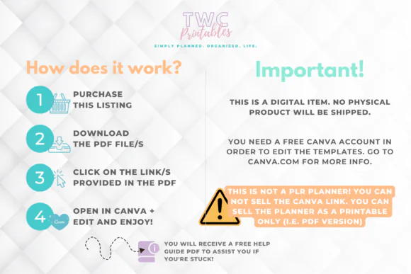 Please note that these are not fillable PDF templates. They are designed to be edited in Canva and then printed for handwritten use, unless you manually add text boxes in Canva. A help guide PDF is included to make editing easier, especially for beginners. Because this is a digital product, no physical item will be shipped. This bundle is a practical and attractive solution for creating a personalized fitness journal, health tracker, or wellness planner.